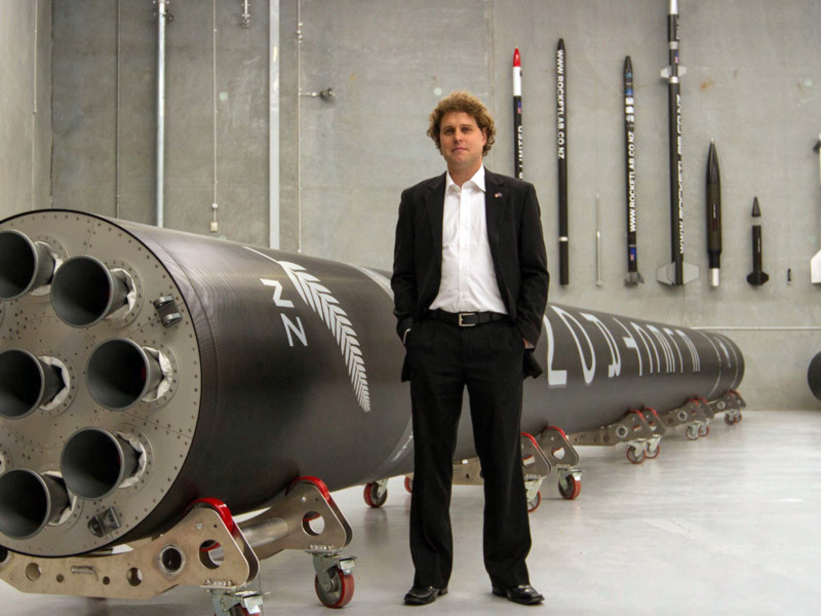 Peter Beck with an orbital class Electron rocket. | Credit: Rocket Lab
